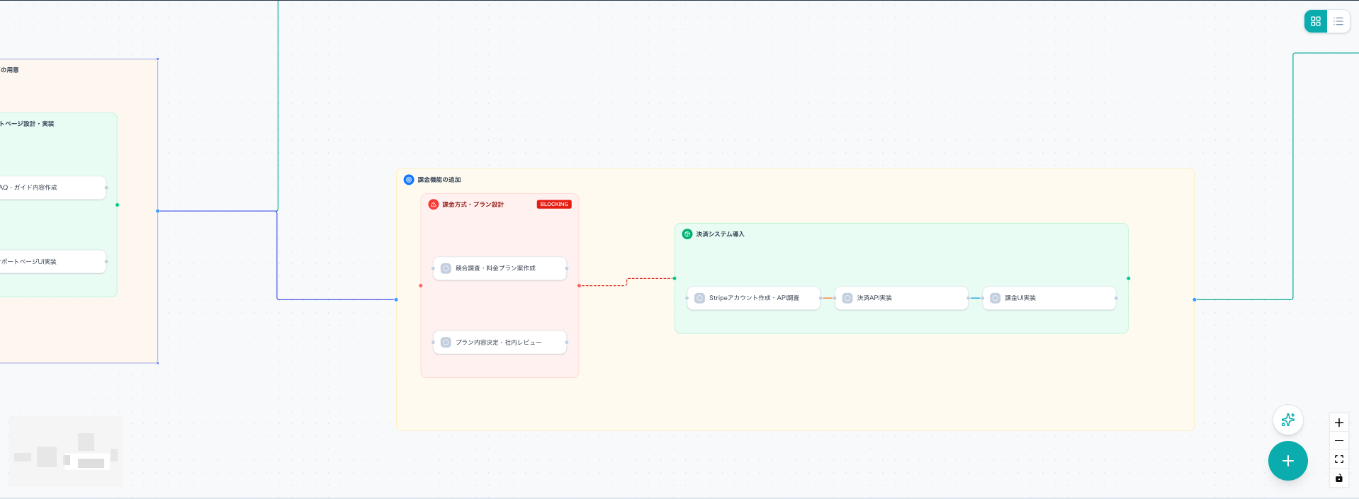Google Maps的なフォーカス表示で、全体像からタスク詳細までシームレスにズームイン・アウト。